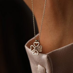 14 Ayar Beyaz Altın Pırlanta Montürlü Oval Kolye
