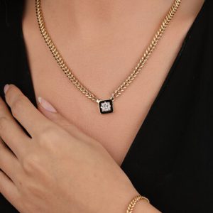 14 Ayar Altın İtalyan Toplu Plaka Kolye