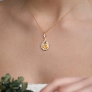 14 Ayar Altın Elmas Montürlü Tek Taş Kolye