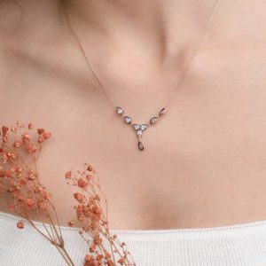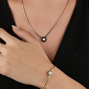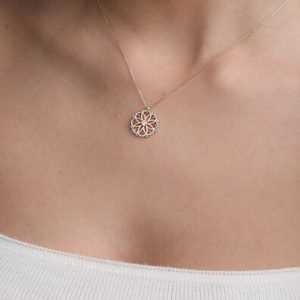 14 Ayar Altın Serpme Taşlı Lotus Kolye