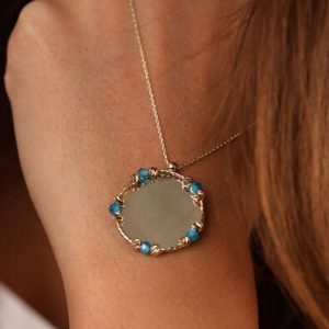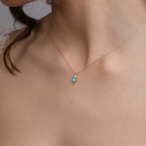 14 Ayar Altın Aqua Taş Kolye