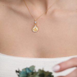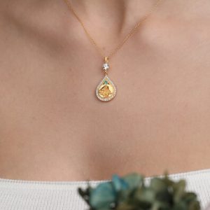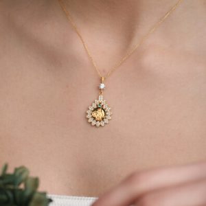 14 Ayar Altın Elmas Montürlü Damla Su Yolu Kolye