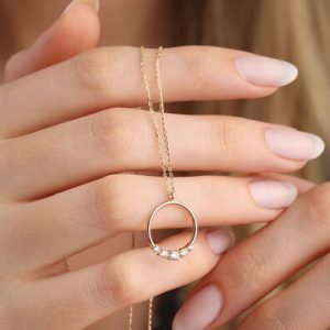 14 Ayar Altın Yuvalak 5 Taş Kolye