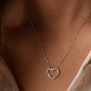 14 Ayar 14 Ayar Altin Tasli Kalp Kolye