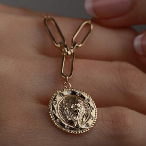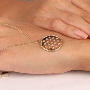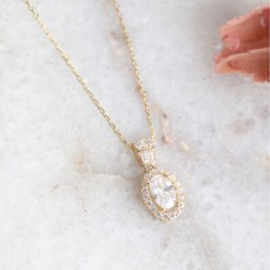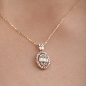 14 Ayar Altın Pırlanta Montürlü Oval Kolye