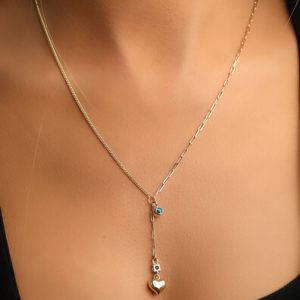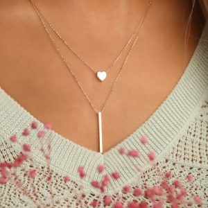14 Ayar Altın Çubuk ve Kalp Kolye