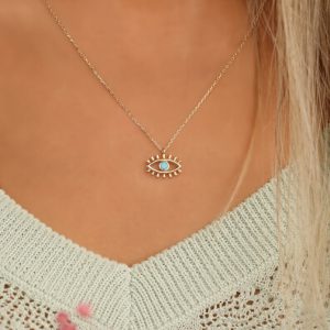 14 Ayar Altın Firuze Taşı Çıtır Göz Kolye