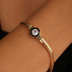 14 Ayar Altın Kare Baget Taşlı Bileklik