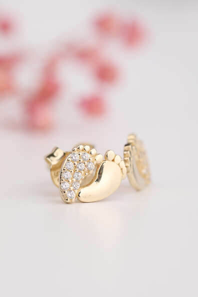 14 Ayar Altın Bebek Ayak İzi Küpe