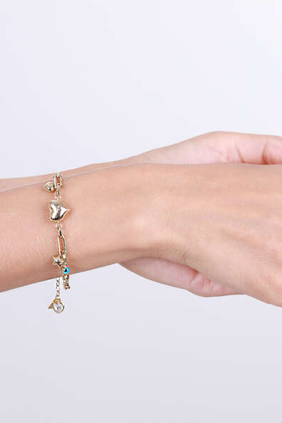 Kalp yıldız ve top yumakları ile oluşturulan altın fantezi bilekliğimiz senin şıklığını senin enerjini yansıtacaktır. yezragold büyük bir emekle tasarlanan birbirinden şık modeller el bileğiniz için muhteşem bir armağana dönüşerek ışıltınızı sağlıyor