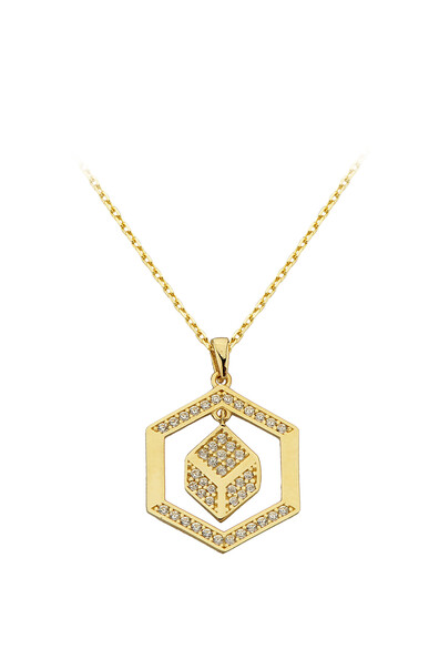 Altın Kare Sallantalı Kolye